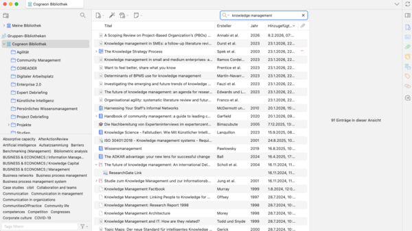 Als Online-Katalog wird [[Zotero]] eingesetzt. Die Gruppe [https://www.zotero.org/groups/599183/items Cogneon Bibliothek] ist öffentlich zugreifbar und durchsuchbar (Zotero App für iOS und Android verfügbar). | Als Online-Katalog wird [[Zotero]] eingesetzt. Die Gruppe [https://www.zotero.org/groups/599183/items Cogneon Bibliothek] ist öffentlich zugreifbar und durchsuchbar (Zotero App für iOS und Android verfügbar). | ||